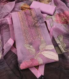 Pink printed organza semi stitched churidar dress-materials