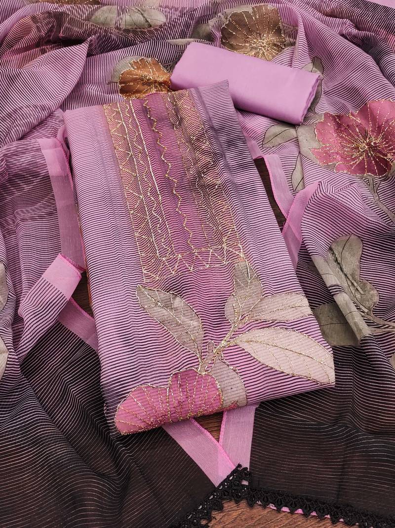 | Product Name | Pink Printed Organza Semi Stitched Churidar Dress Materials | |