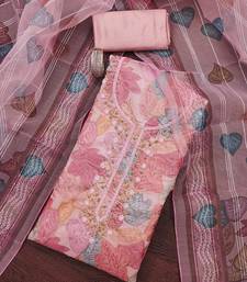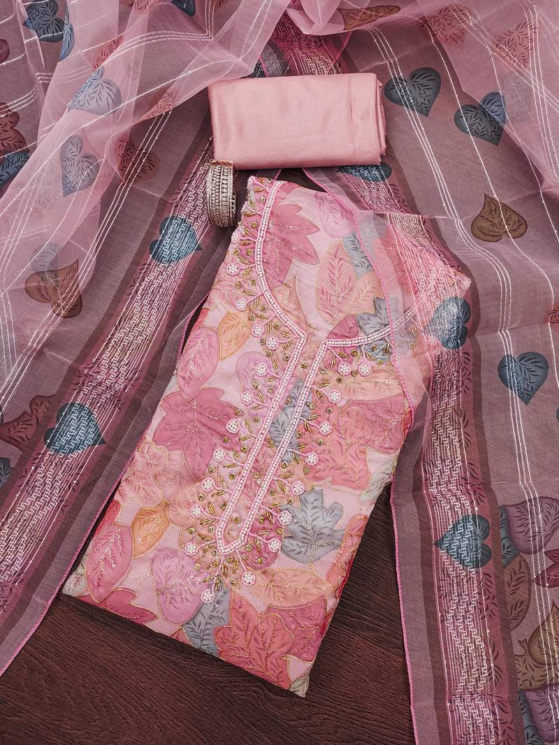 Pink sequins organza semi stitched churidar dress-materials