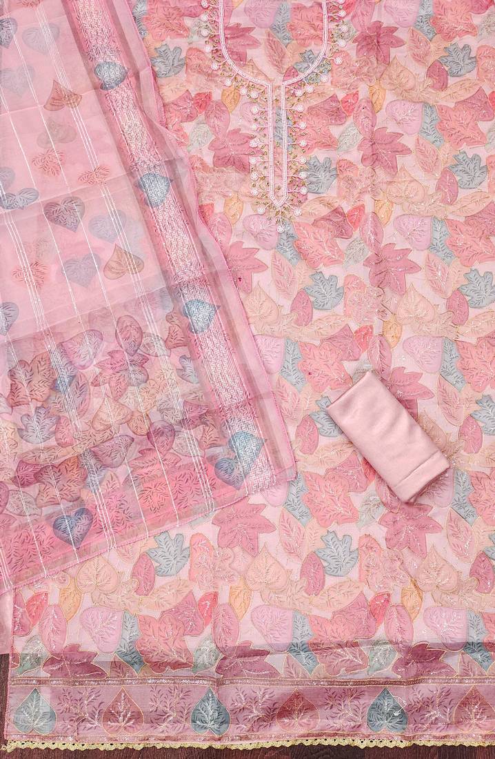 | Product Name | Pink Sequins Organza Semi Stitched Churidar Dress Materials | |