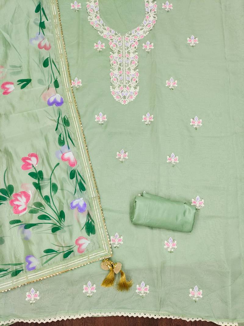 | Product Name | Pista Green Color Embroidered Heavy Organza Straight Churidar Dress Material | |