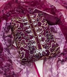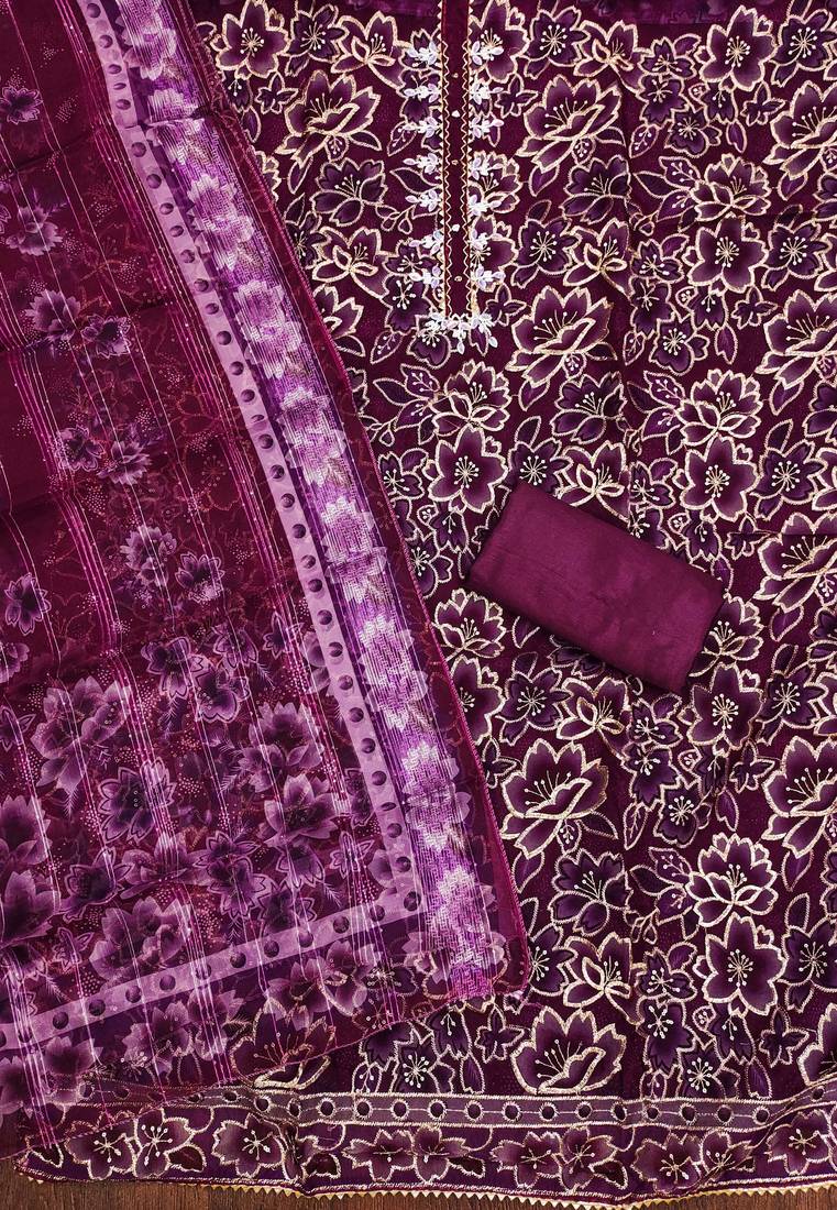 Purple color sequence heavy organza straight churidar dress material semi stitched