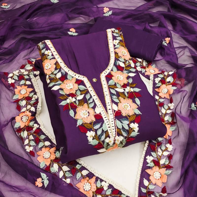 | • | Dupatta | : | Color- Purple / Fabric- Organza |