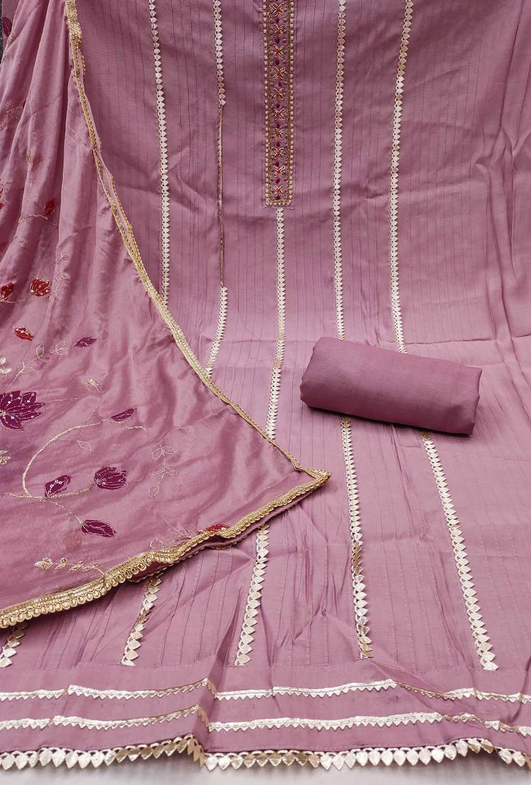 | Product Description | Contemporary Heavy Lace Handwork And Fancy Border With Designer Embroidered Dupatta Straight Style 2.20 Mtr Unstitched Dress Material Top Of Purple Colour Premium Roman Cotton Fabric Also Including 2.40 Mtr Chudidar Style Bottom Piece Material Of Purple Colour Rayon Fabric With 2.10 Mtr Dupatta Of Purple Colour Nazneen Fabric By Shadow & Saining Brand |