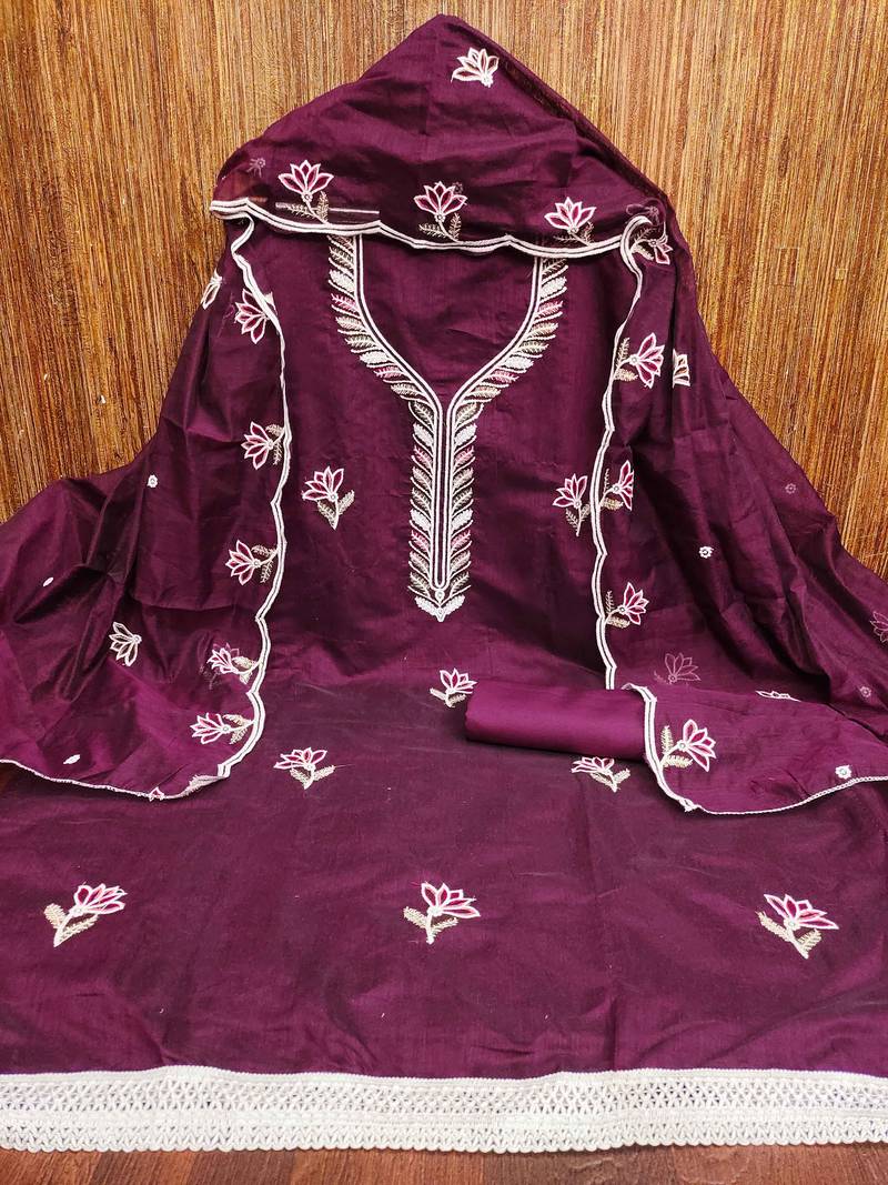 | Product Description | Artisanal Heavy Thread Sequence Embroidery And Fancy Border With Embroidered Dupatta Straight Style 2.00 Mtr Unstitched Dress Material Top Of Purple Colour Chanderi Cotton Fabric With 2 Mtr Micro Crape As Lining Inner Fabric Also Including 3.60 Mtr Unstiched Bottom Material Of Purple Colour Micro Crape Fabric With 2.00 Mtr Dupatta Of Purple Colour Chanderi Cotton Fabric By Shadow & Saining Brand |