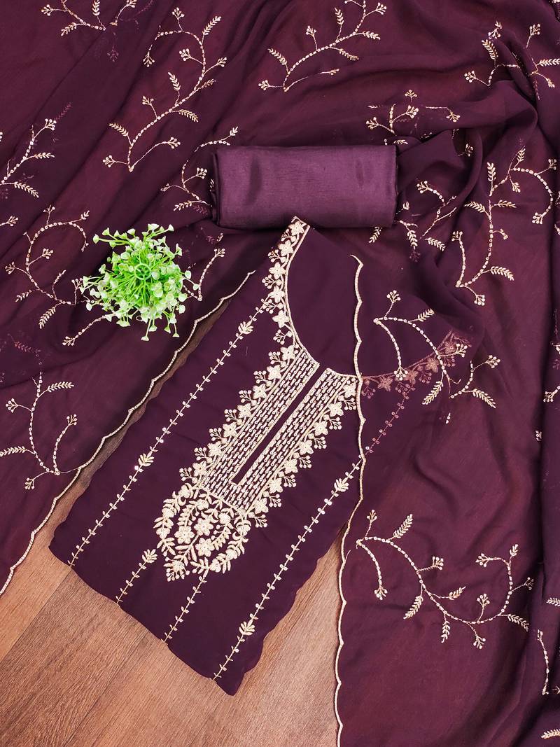 | Product Description | Appealing Heavy Zari Sequence Embroidery And Fancy Border With Embroidered Dupatta Straight Style 1.80 Mtr Unstitched Dress Material Top Of Purple Colour Georgette Fabric With 2 Mtr Santoon As Lining Inner Fabric Also Including 3.80 Mtr Unstiched Bottom Material Of Purple Colour Santoon Fabric With 2.10 Mtr Dupatta Of Purple Colour Georgette Fabric By Shadow & Saining Brand |