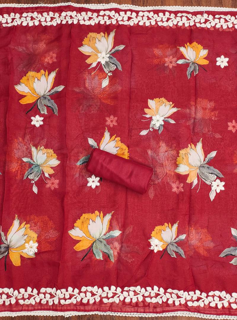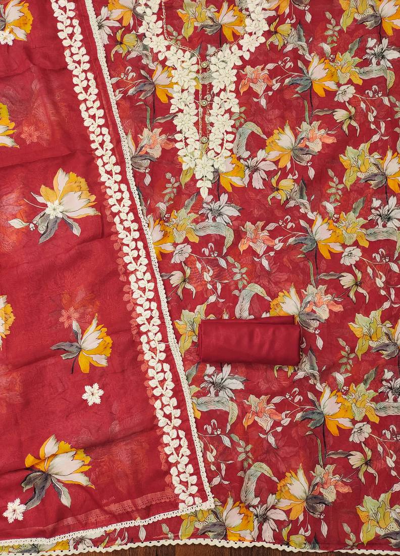 | Product Name | Red Color Embroidered Heavy Organza Straight Churidar Dress Material | |