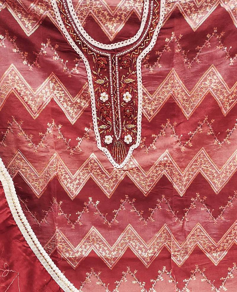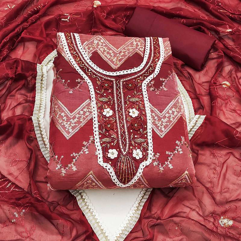 | Product Description | Fancy Sequin Work With Position Print And Hand Work With Heavy Embroidered Dupatta Work Straight Style 2.00 Mtr Unstitched Dress Material Top Of Red Colour Oragnza Fabric With 2 Mtr Heavy Santoon As Lining Inner Fabric Also Including 3.80 Mtr Unstitched Bottom Material Of Red Colour Heavy Santoon Fabric With 2.00 Mtr Dupatta Of Red Colour Nazmin Fabric |