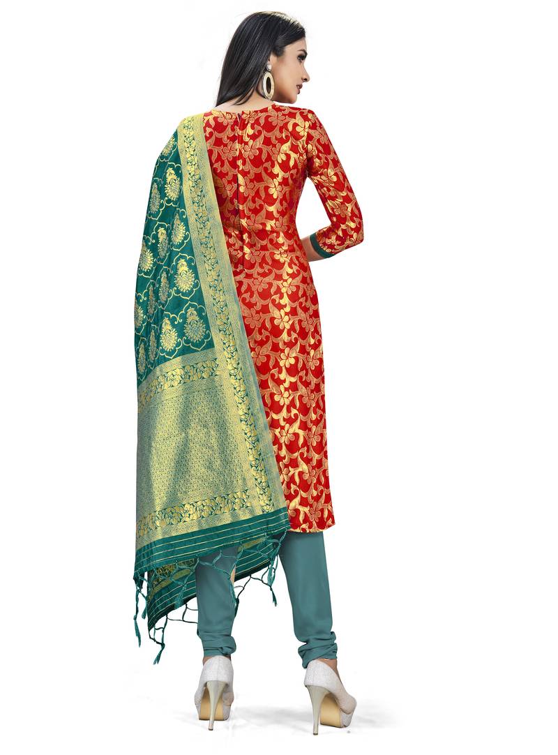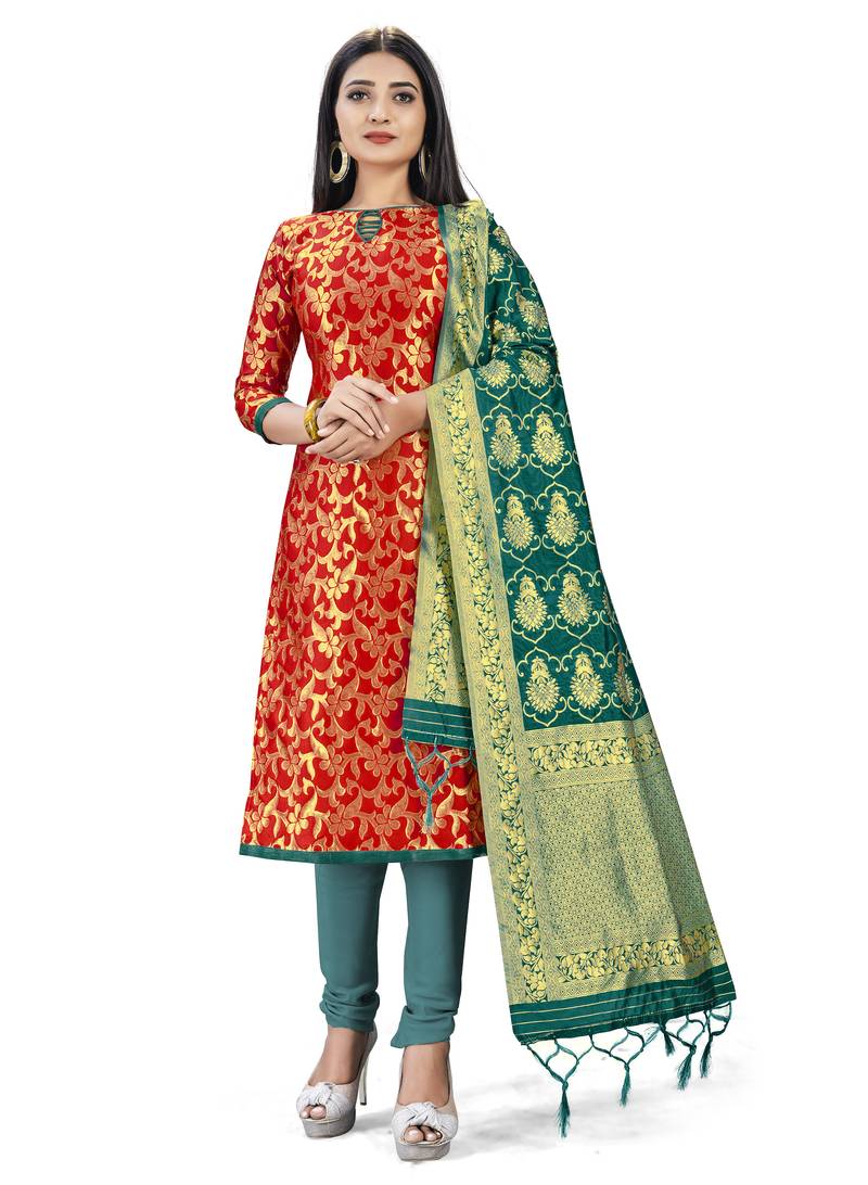 | Product Name | Red Woven Silk Blend Unstitched Churidar Dress Materials | |