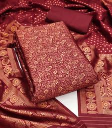Red woven silk blend unstitched churidar dress-materials