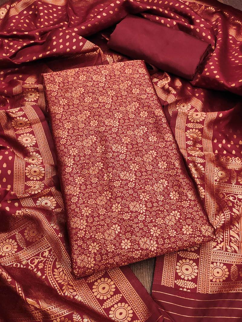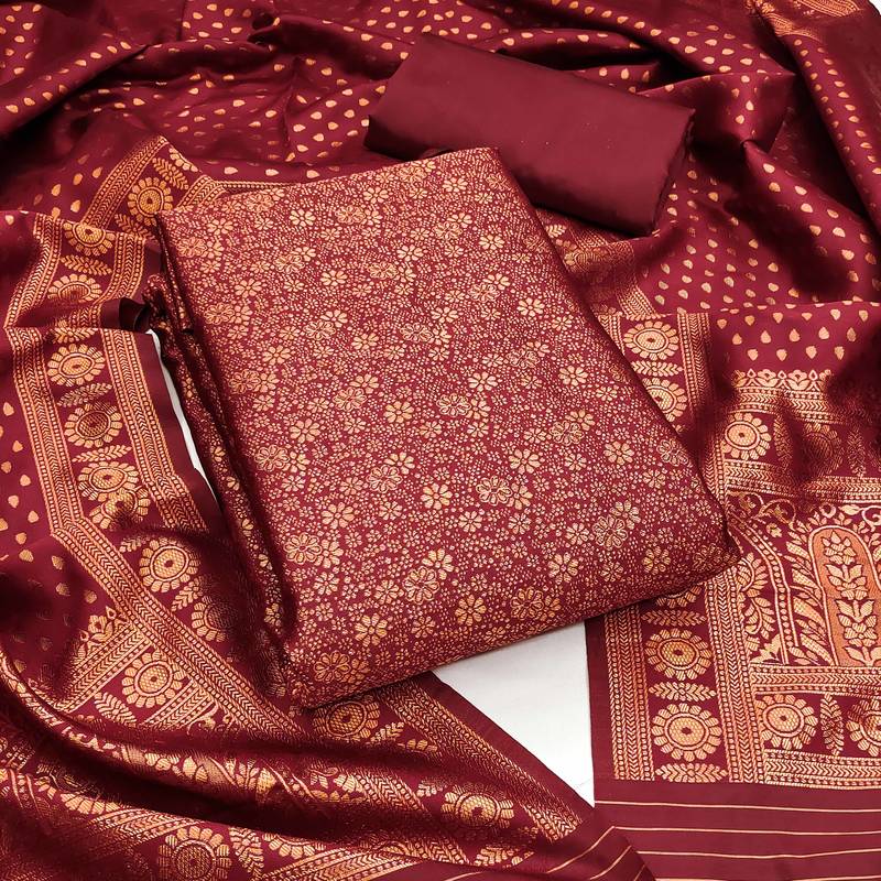 | Product Name | Red Woven Silk Blend Unstitched Churidar Dress Materials | |