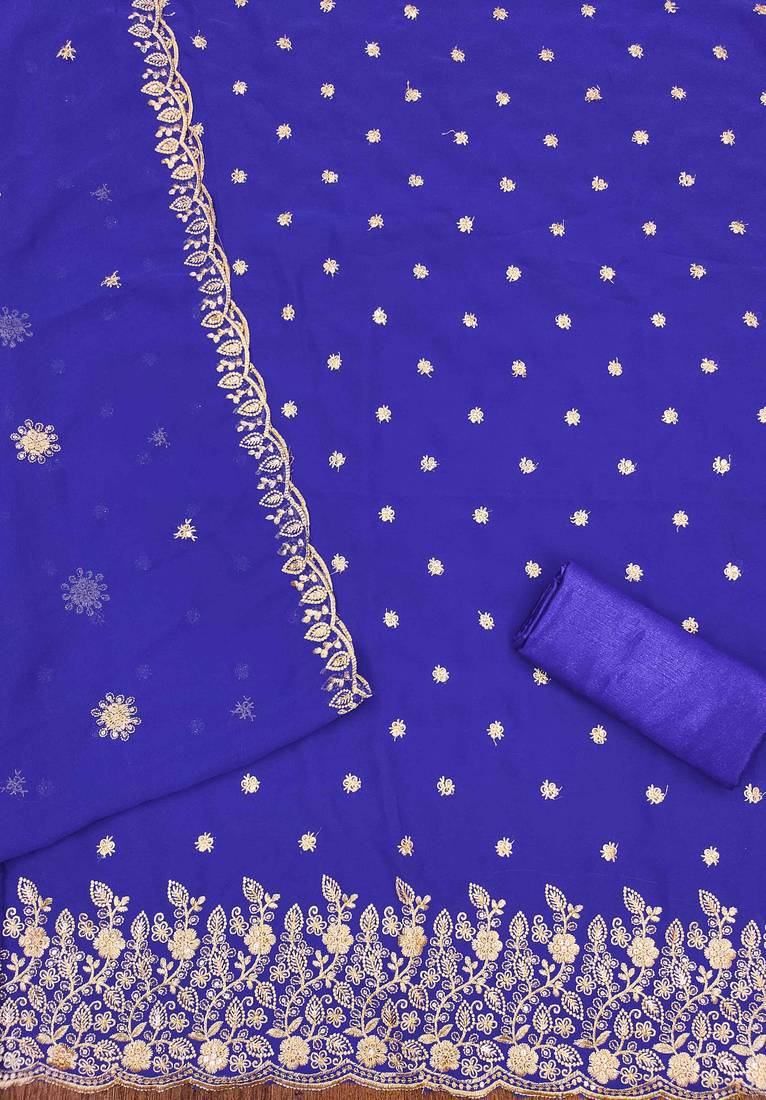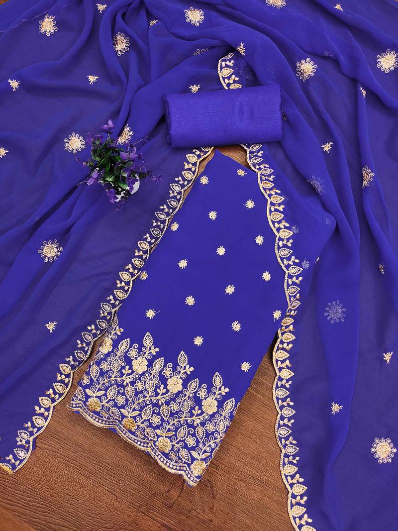 Product Name Royal Blue Embroidered Georgette Semi Stitched Churidar Dress Materials