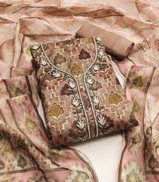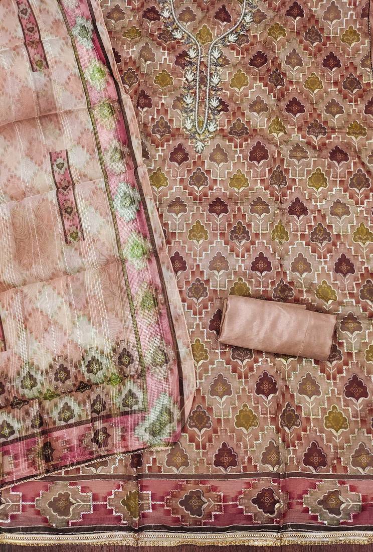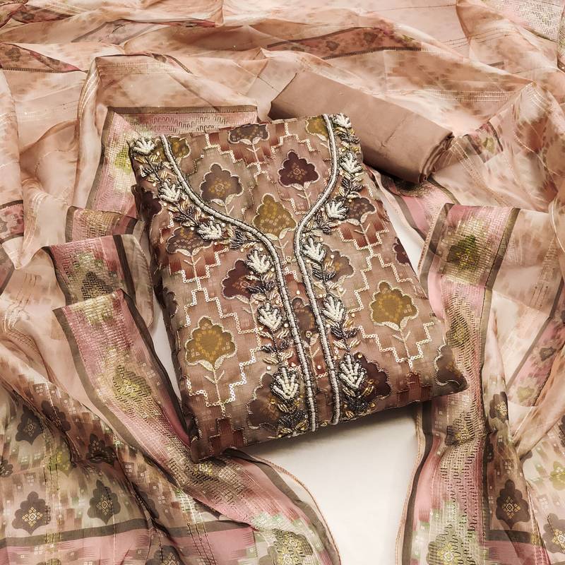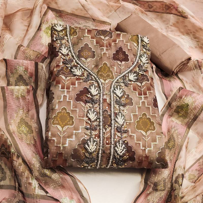 Rust color sequence heavy organza straight churidar dress material semi stitched
