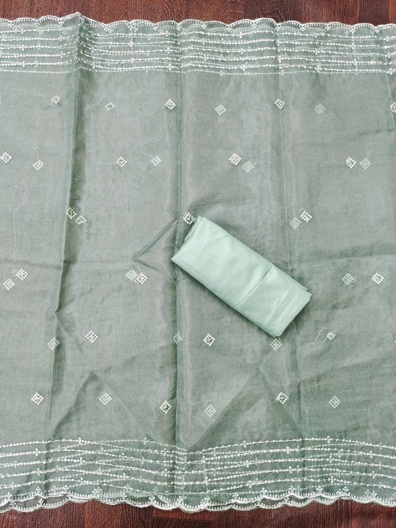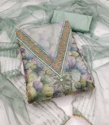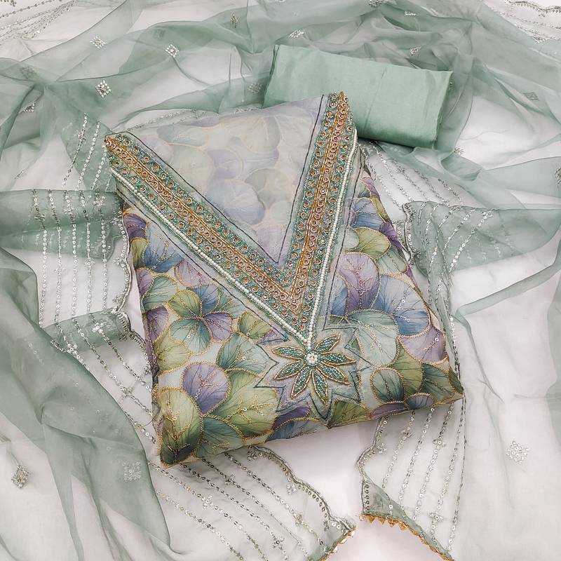 Sea green color sequence heavy organza straight churidar dress material semi stitched