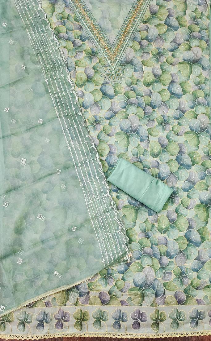 | Product Name | Sea Green Color Sequence Heavy Organza Straight Churidar Dress Material | |