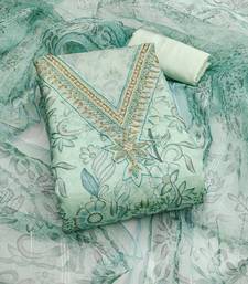 Sea green color sequence heavy organza straight churidar dress material semi stitched