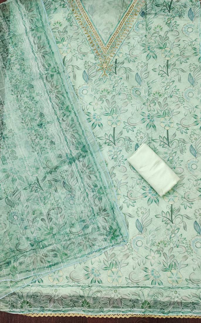| Product Name | Sea Green Color Sequence Heavy Organza Straight Churidar Dress Material | |