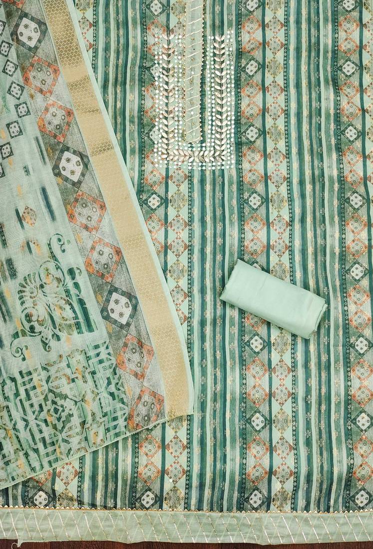 | Product Name | Sea Green Color Weaving Banarasi Jacquard Straight Churidar Dress Material | |