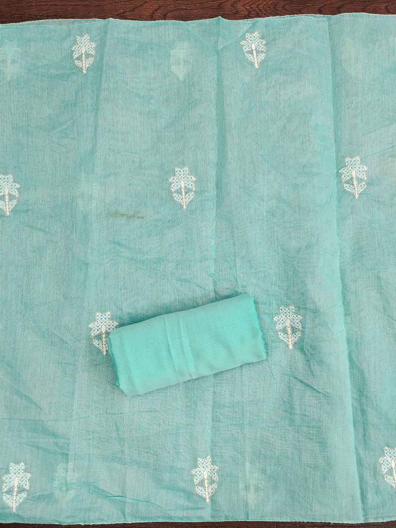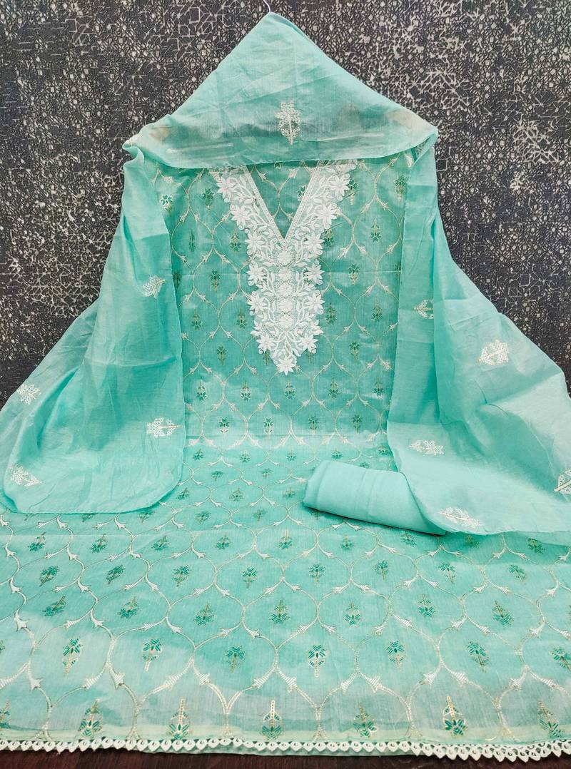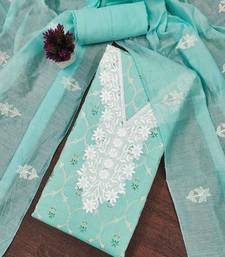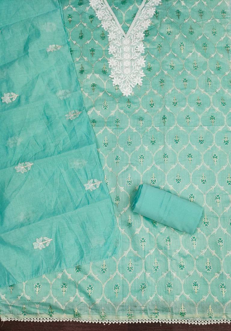 Sea-green embroidered chanderi semi stitched churidar dress-materials