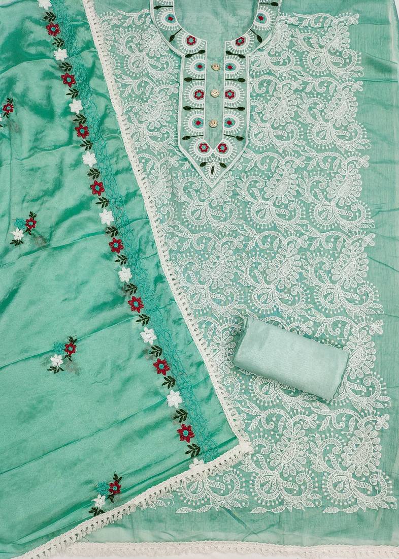 | Product Name | Sea Green Embroidered Cotton Semi Stitched Churidar Dress Materials | |