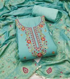 Sea-green hand embroidery cotton semi stitched churidar dress-materials