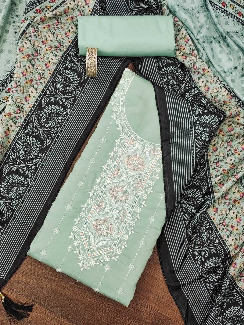 | Product Name | Sea Green Sequins Silk Blend Semi Stitched Churidar Dress Materials | |