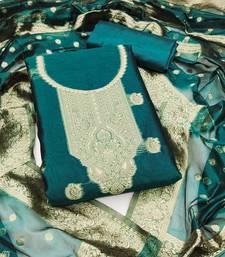 Sea-green woven shimmer semi stitched churidar dress-materials
