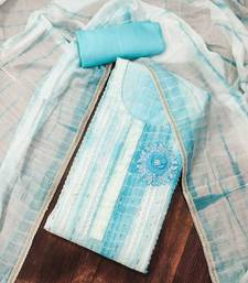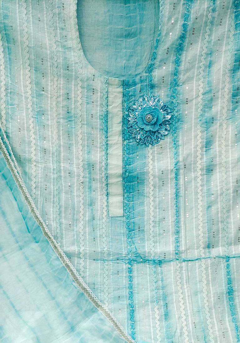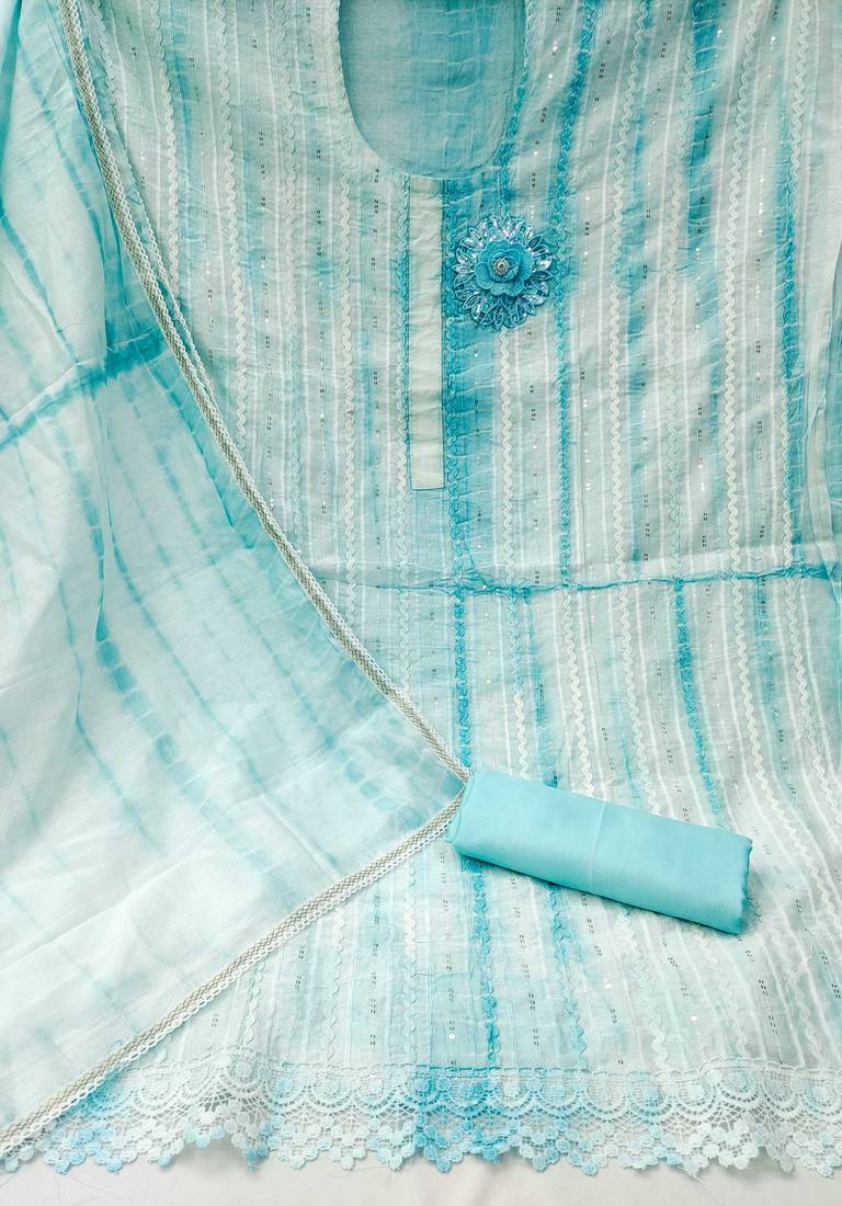 Sky blue cotton sequins dress material unstitched