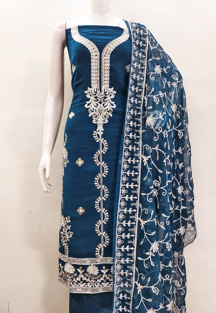| • | Dupatta | : | Color- Teal Blue / Fabric- Georgette |