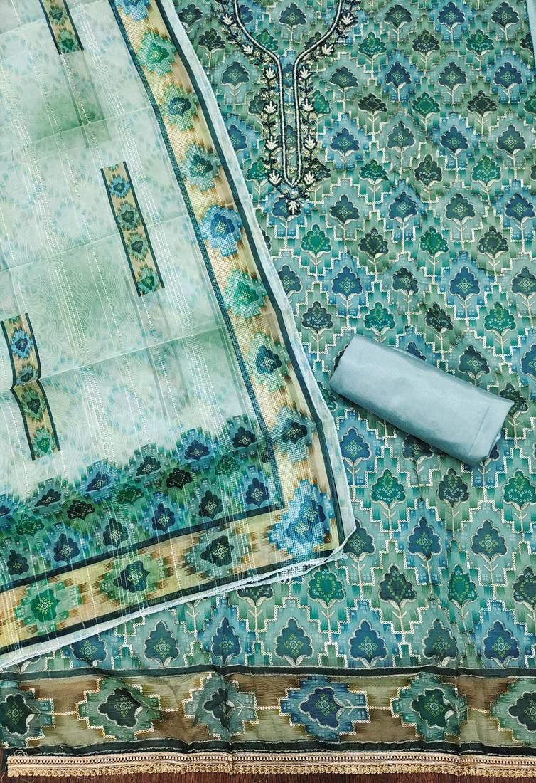| Product Description | Awesome Stylish Sequence Work With Designer Position Print And Hand Work With Heavy Embroidered Dupatta Work Straight Style 1.90 Mtr Unstitched Dress Material Top Of Teal Colour Heavy Organja Fabric With 2 Mtr Heavy Santoon As Lining Inner Fabric Also Including 3.60 Mtr Unstiched Bottom Material Of Teal Colour Heavy Santoon Fabric With 2.15 Mtr Dupatta Of Multi Colour Heavy Organja Fabric By Shadow & Saining Brand |