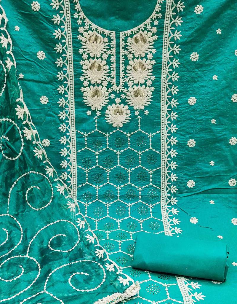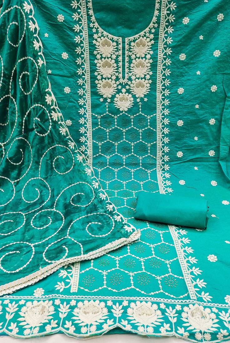 | Product Name | Teal Chanderi Silk Embroidered Dress Material | |