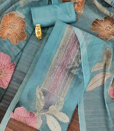 Teal printed organza semi stitched churidar dress-materials