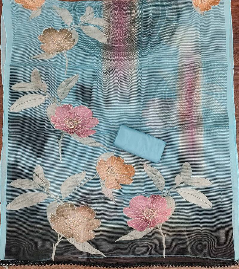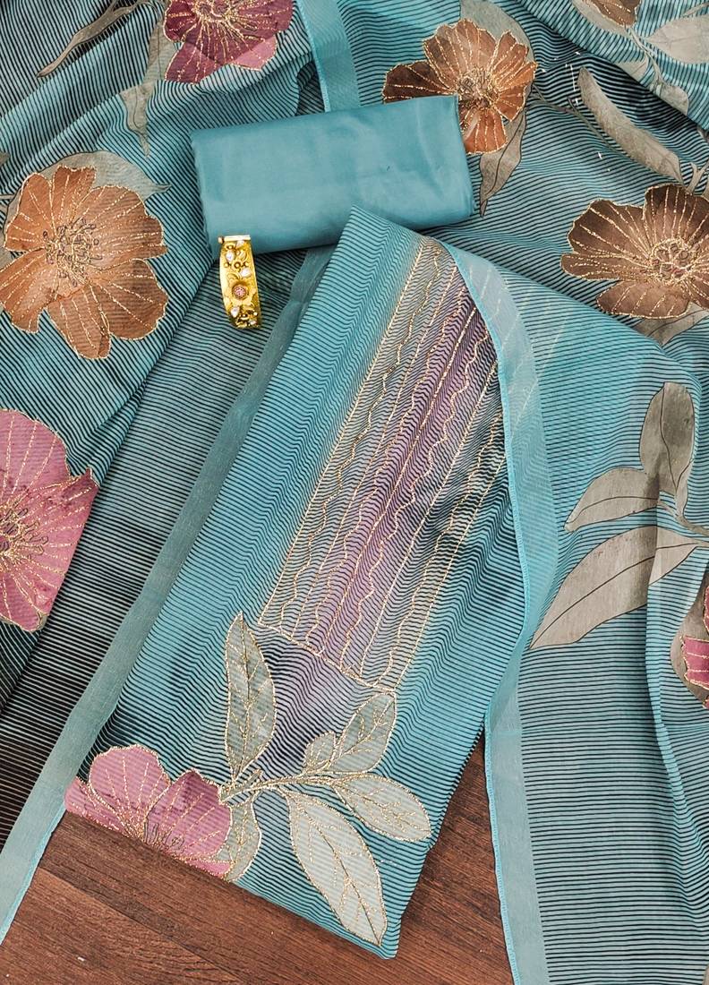 | Product Name | Teal Printed Organza Semi Stitched Churidar Dress Materials | |