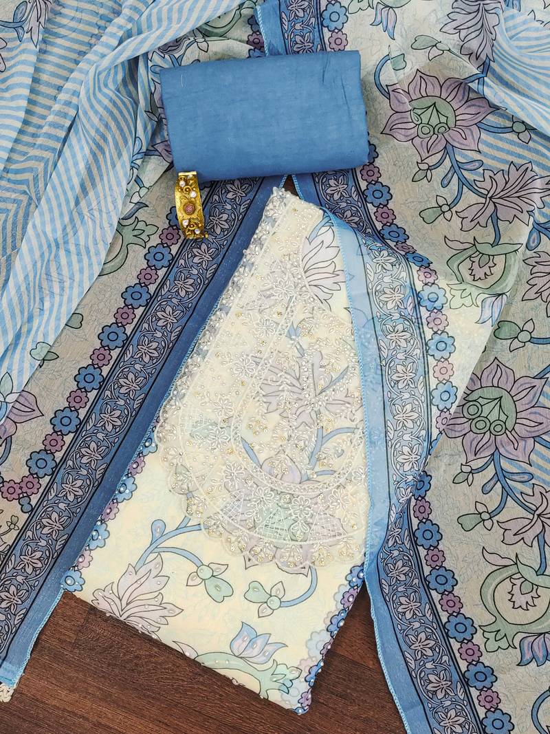 | Product Description | Exclusive Heavy Moti Beads And Stone Work With Designer Digital Print Work And Neck,Border Work Along With Stylish Print Dupatta Work Straight Style 2.20 Mtr Unstitched Dress Material Top Of Teal Colour Heavy Organza Fabric Also Including 2.40 Mtr Chudidar Style Bottom Piece Material Of Teal Colour Cotton Fabric With 2.25 Mtr Dupatta Of Multi Colour Heavy Organza Fabric By Shadow & Saining Brand |