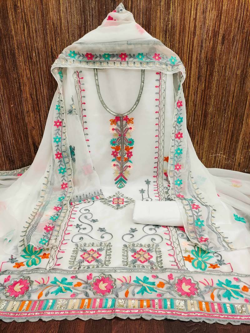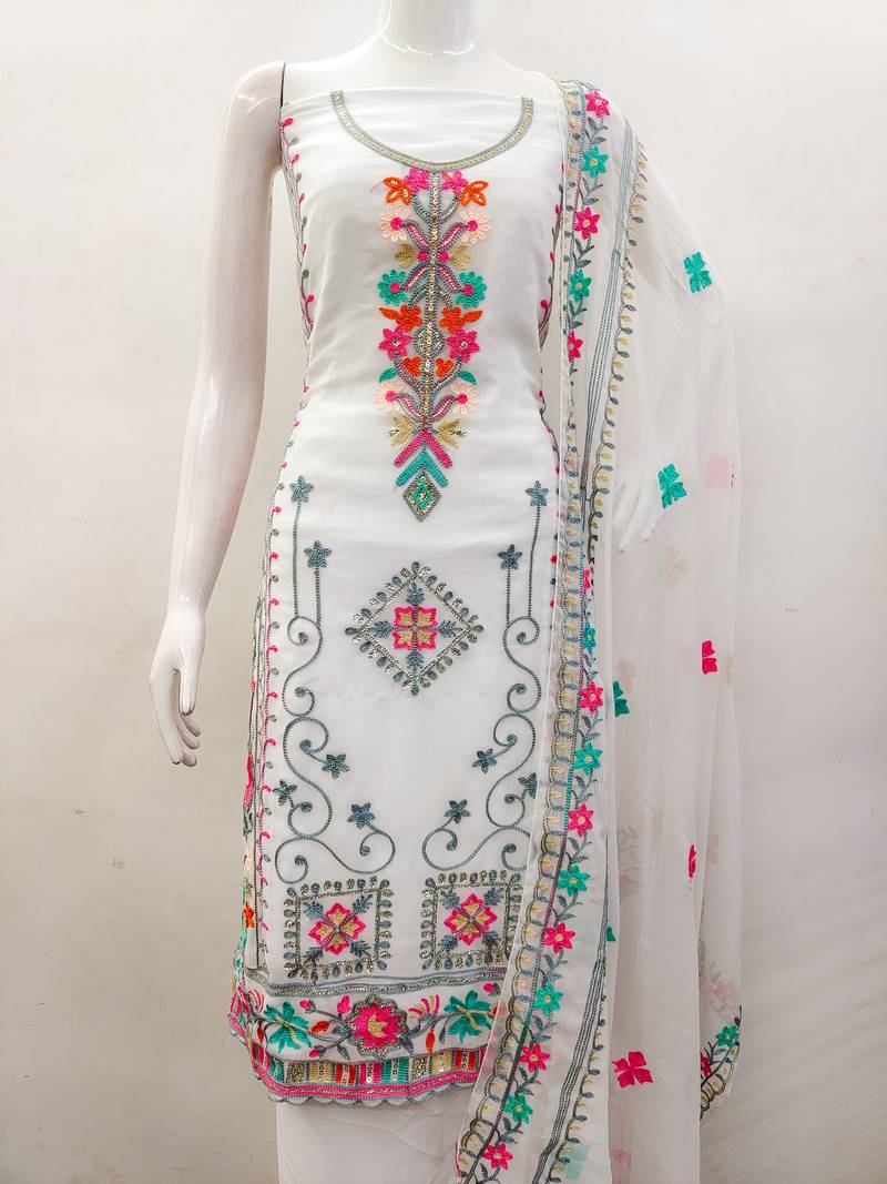 | Product Description | Fancy Heavy Chain Stitched Embroidery And Sequin Work With Embroidered Dupatta Straight Style 2.00 Mtr Unstitched Dress Material Top Of White Colour Georgette Fabric With 2 Mtr Micro As Lining Inner Fabric Also Including 3.60 Mtr Unstitched Bottom Material Of White Colour Micro Fabric With 2.00 Mtr Dupatta Of White Colour Georgette Fabric |