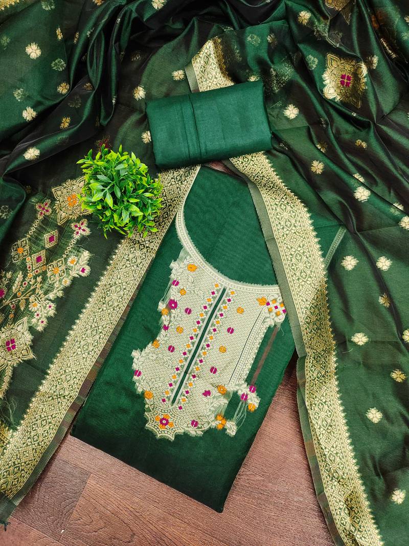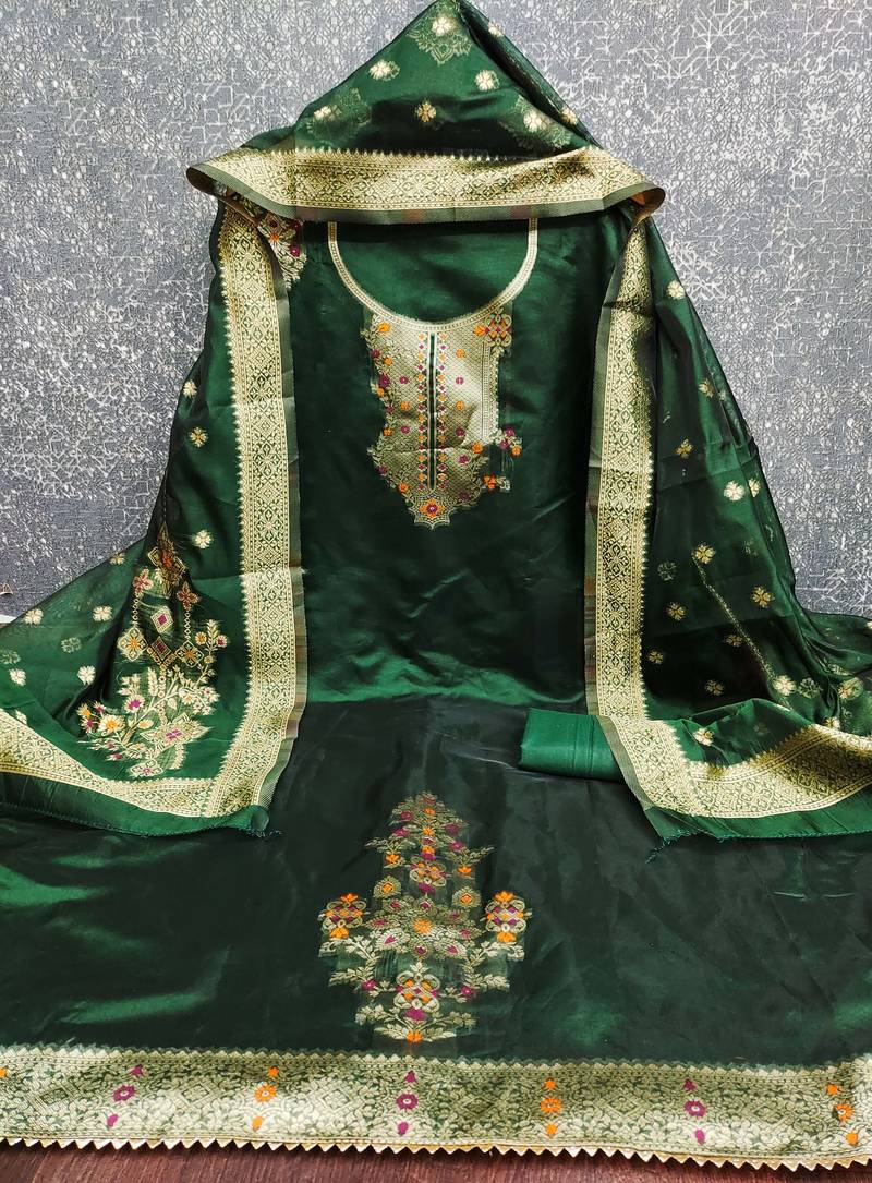 | Product Name | Women Green Organja Jacquard Dress Material With Dupatta | |