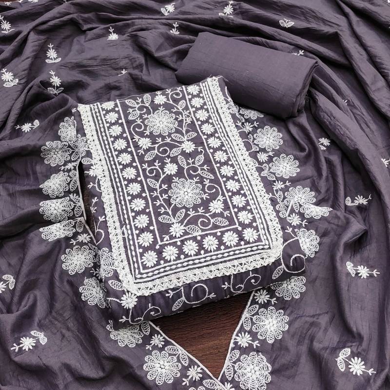 | Product Description | Colorfast Heavy Thread Multi Embroidery And Fancy Border With Embroidered Dupatta Straight Style 1.90 Mtr Unstitched Dress Material Top Of Grey Colour Parampara Silk Fabric With 2 Mtr Santoon As Lining Inner Fabric Also Including 3.60 Mtr Unstiched Bottom Material Of Grey Colour Santoon Fabric With 2.00 Mtr Dupatta Of Grey Colour Parampara Silk Fabric By Shadow & Saining Brand |