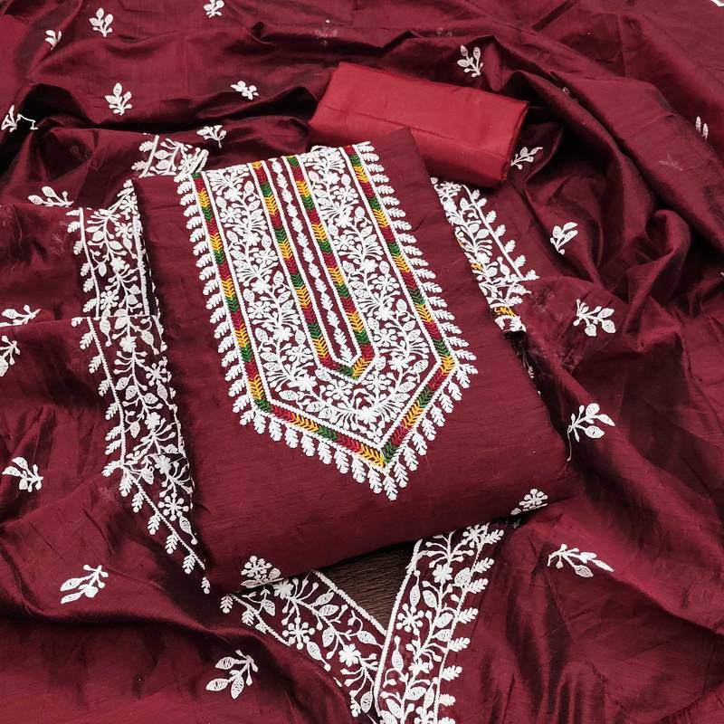 | Product Description | Signature Heavy Thread Multi Embroidery And Fancy Border With Embroidered Dupatta Straight Style 1.90 Mtr Unstitched Dress Material Top Of Maroon Colour Modal Cotton Fabric With 2 Mtr Santoon As Lining Inner Fabric Also Including 3.60 Mtr Unstiched Bottom Material Of Maroon Colour Santoon Fabric With 2.00 Mtr Dupatta Of Maroon Colour Modal Cotton Fabric By Shadow & Saining Brand |