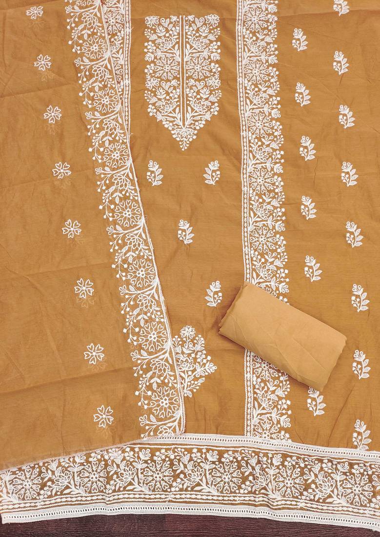 Yellow embroidered cotton semi stitched churidar dress-materials
