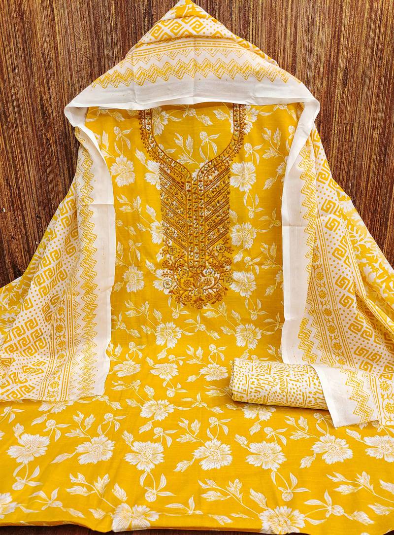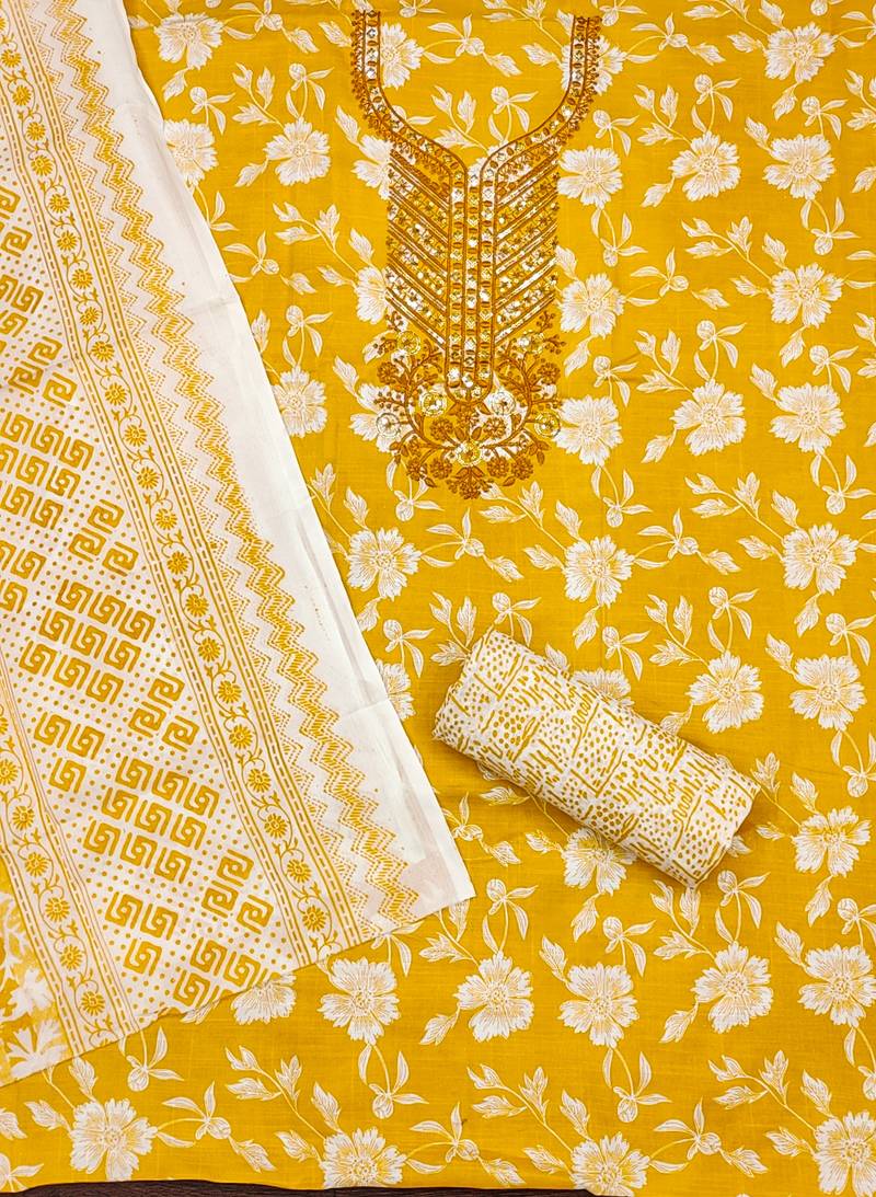 | Product Name | Yellow Printed Cotton Semi Stitched Churidar Dress Materials | |