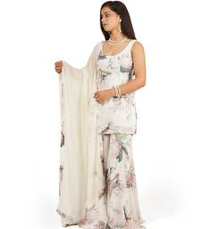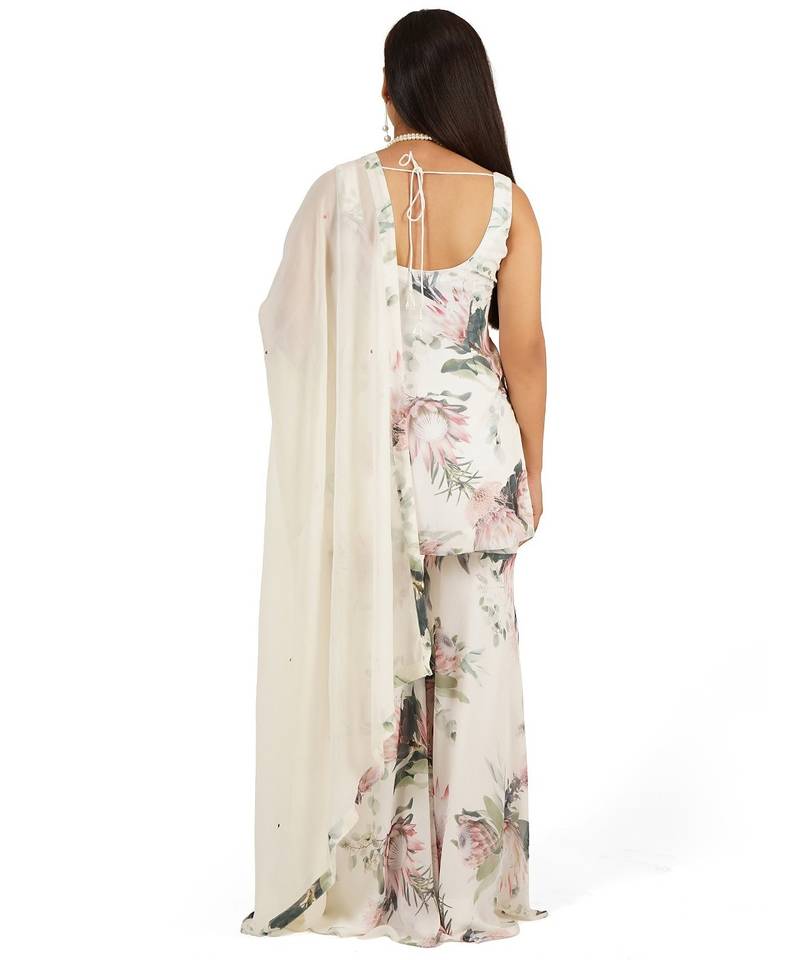 Flower digital printed kurti sharara dupatta set