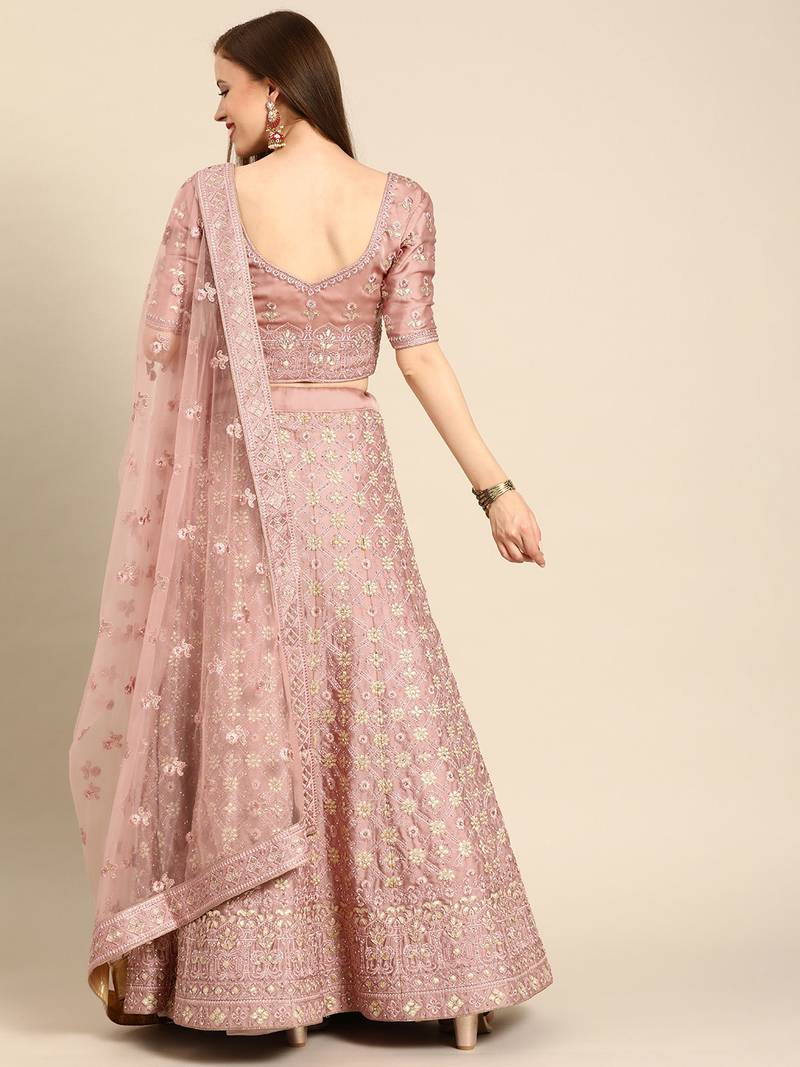 | Product Name | Peach Embroidered Art Silk Unstitched Ghagra Choli | |