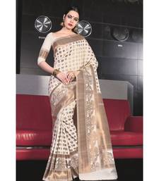 | Product Name | White Woven Silk Blend Saree With Blouse | |