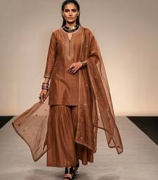 | Product Name | Brown Embroidered Raw Silk Sharara Set | |