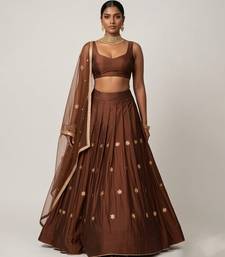 Brown embroidered silk lehenga set