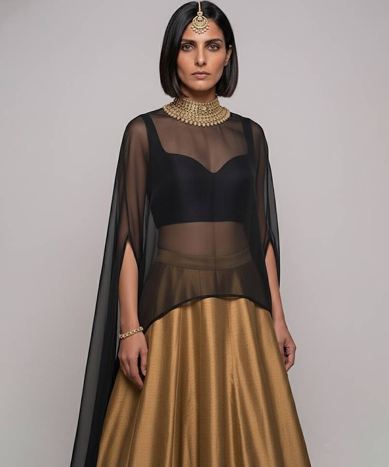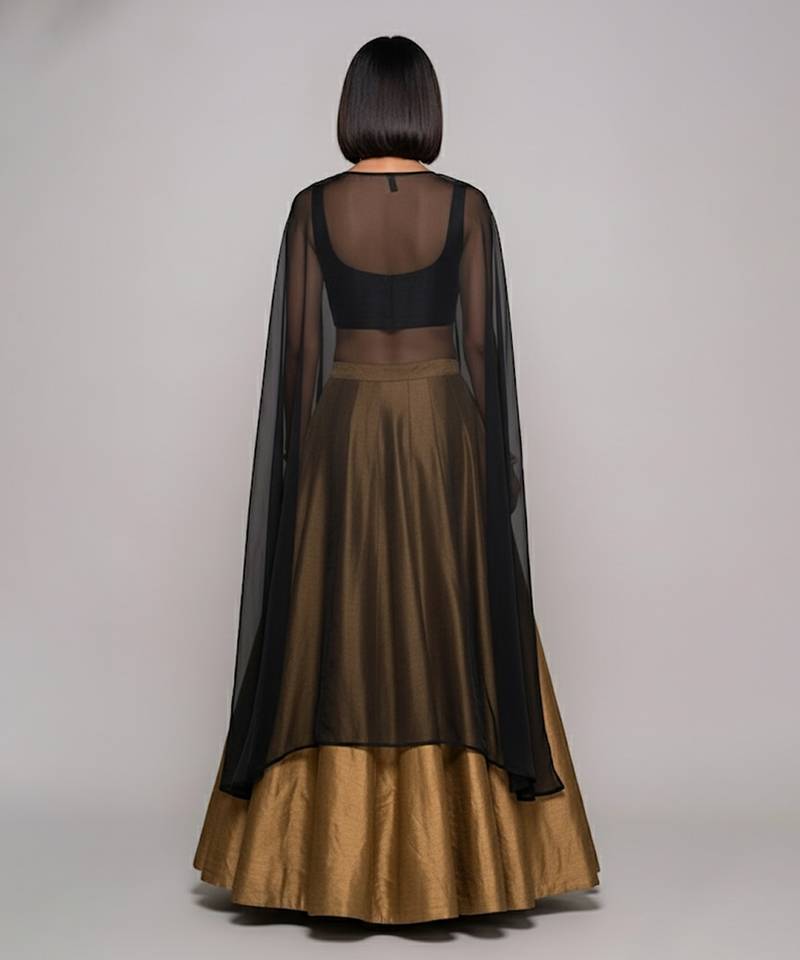 | Product Name | Gold Raw Silk Indo Western Lehenga Set With Black Blouse | |