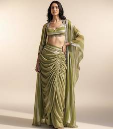 Green embroidered chiffon co ord set