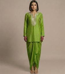 Green embroidered satin silk kurta