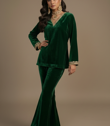 | Product Description | Green Embroidered Velvet Co Ord Set Featuring A Rich, Plush Texture And Luxurious Finish. Accented With Intricate Embroidery That Adds Elegance And Depth. Designed For Comfort And Style, This Ensemble Is Perfect For Festive Occasions, Weddings, And Evening Celebrations, Offering A Regal Blend Of Traditional Charm And Contemporary Sophistication.