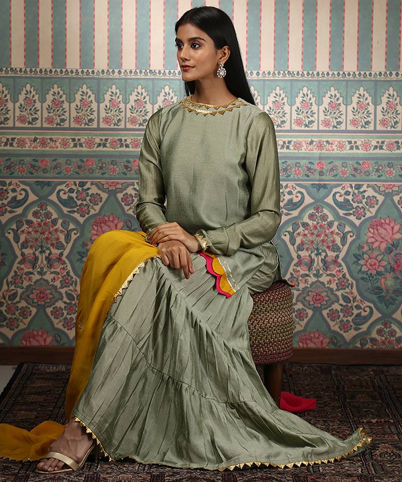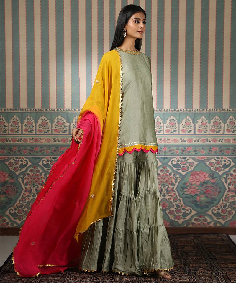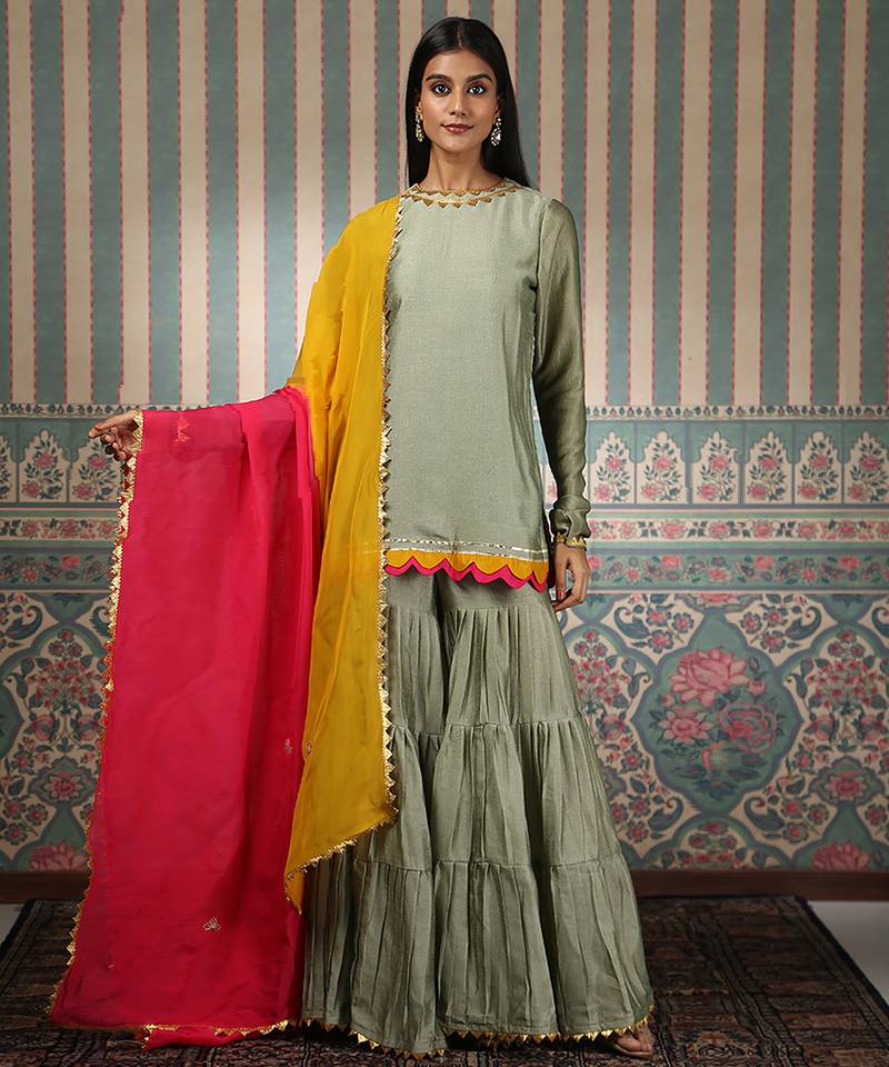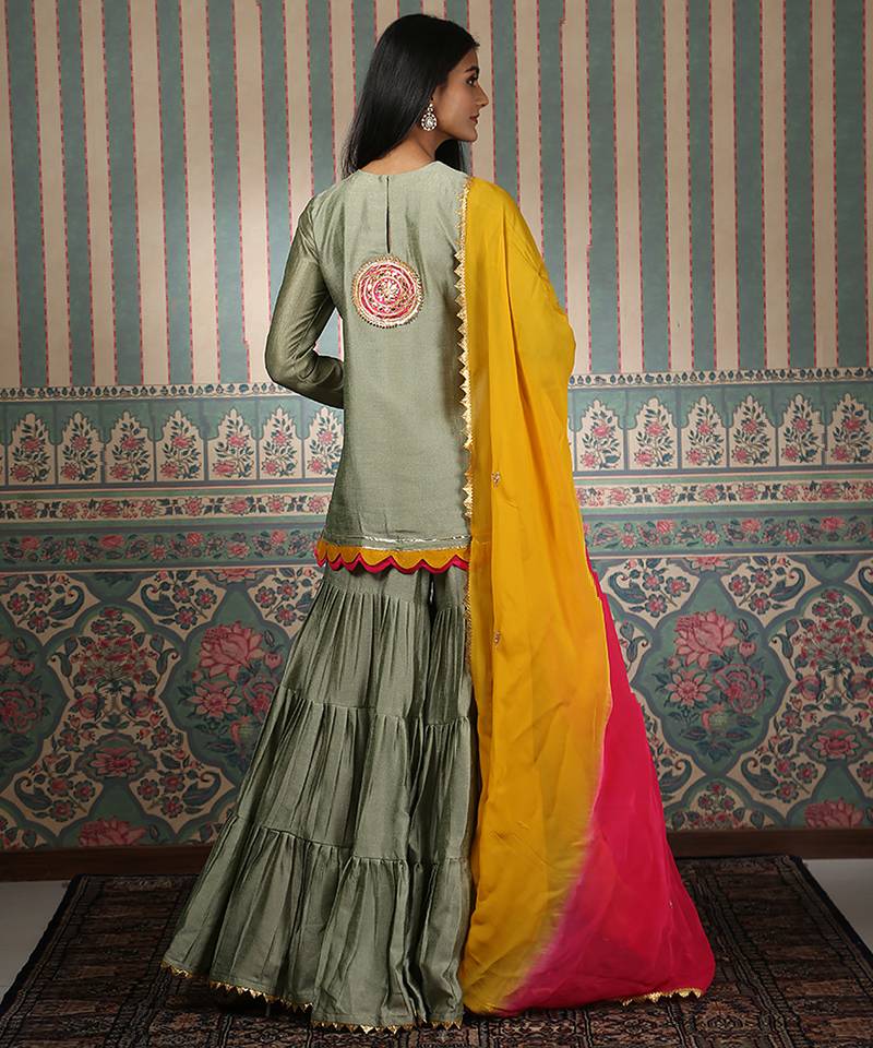 | Product Name | Green Plain Silk Blend Gharara Set | |